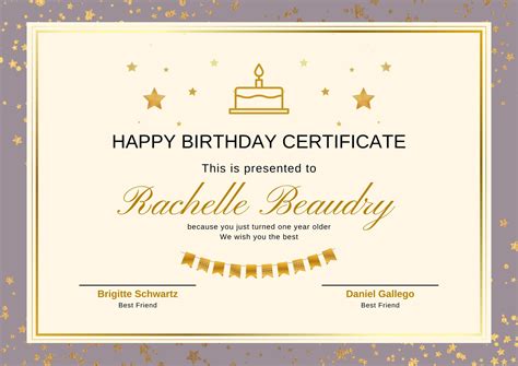 Adding a personal touch to the birthday certificate can make all the difference. Include the recipient's name, age, and a heartfelt message to make it truly special. You can also incorporate their favorite colors or elements that hold significance to them.